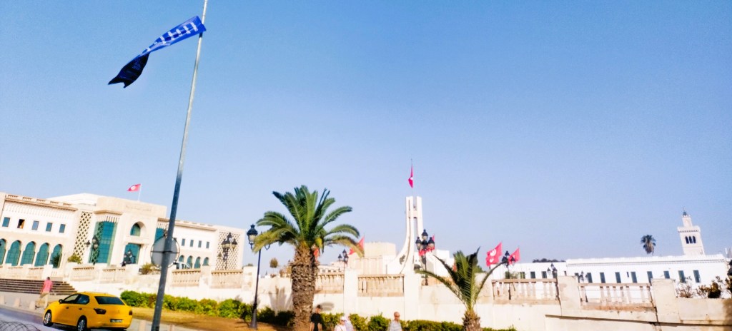 Cerca de la mezquita está la Plaza de la Kasbah, una esplanada donde hasta mediados del siglo pasado hubo un barrio que fue derrumbado cuando inició la modernización de la ciudad. Allí se se encuentra el ayuntamiento u Hôtel de Ville, frente al cual se levanta el Monumento Nacional, una estructura de siete columnas que se unen al elevarse. En esta misma área se encuentra el que fuera palacio presidencial , que en 2014 compró España para su embajada. El nuevo Palacio presidencial fue ubicado en Cartago, a media hora de Tunez.