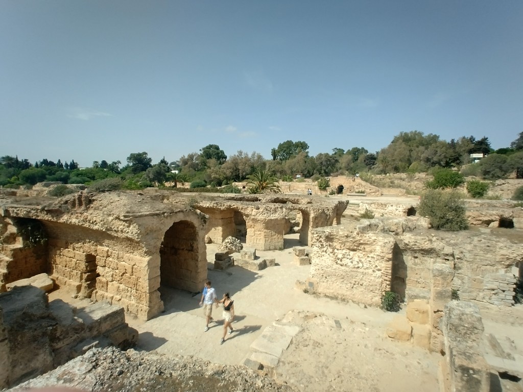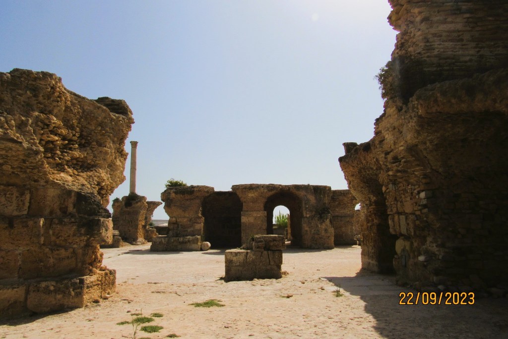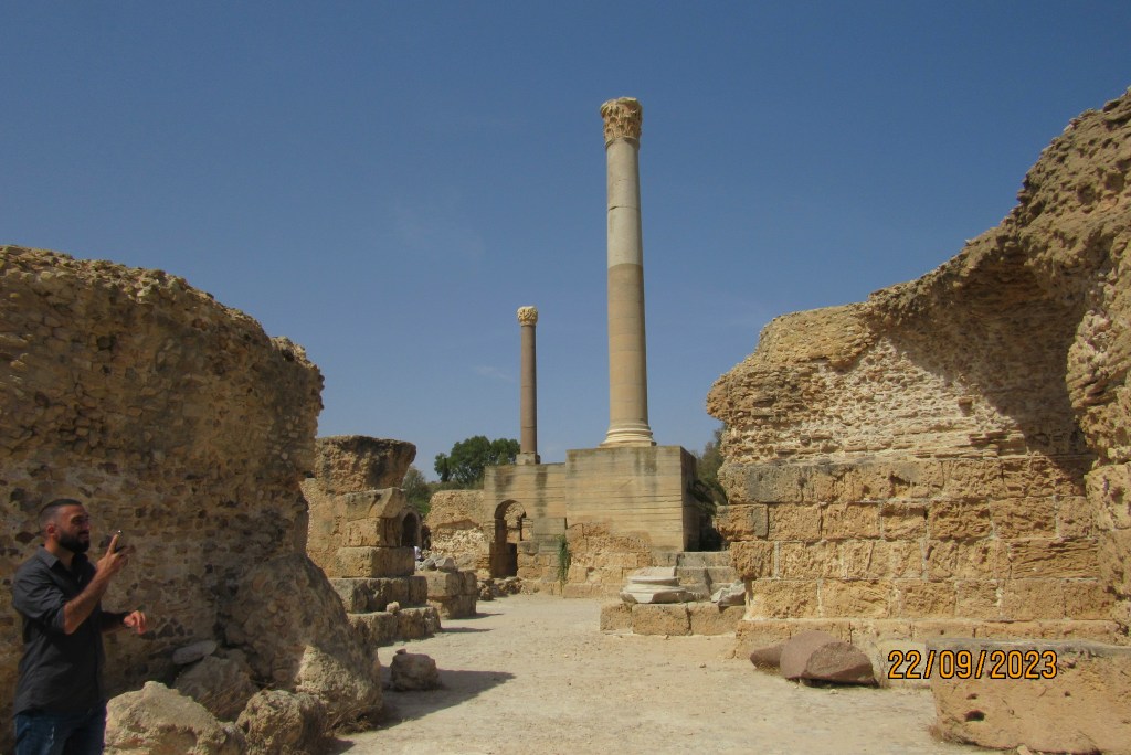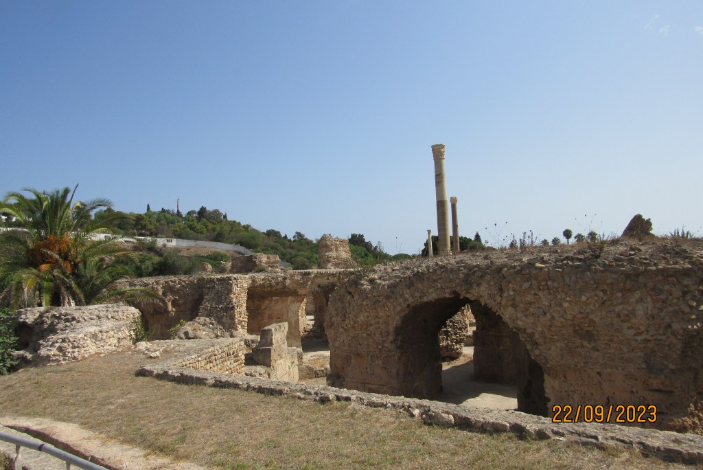 Las ruinas que visitamos son prácticamente romanas, algunas figuras, vasijas y restos de columnas púnicas, se encuentran hoy en el Museo arqueológico de Cartago y en el del Bardo.