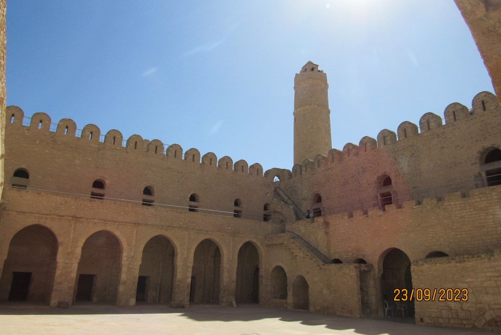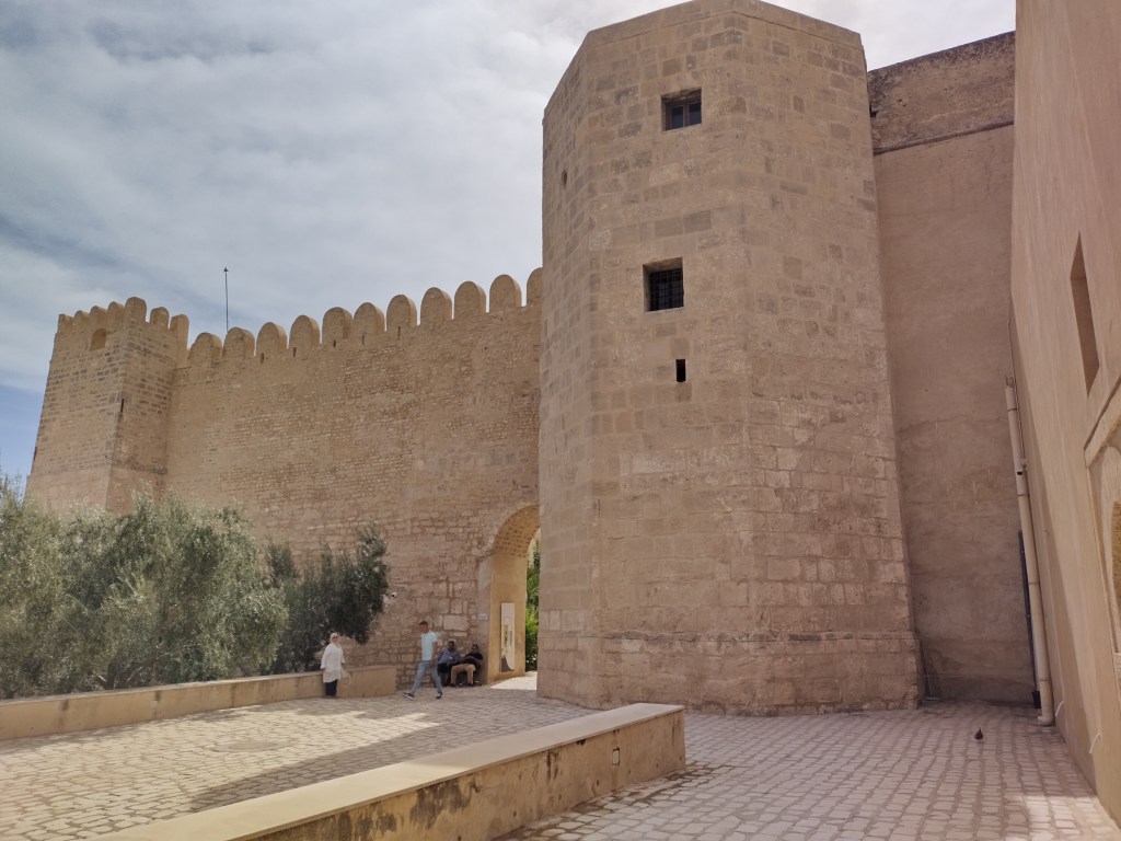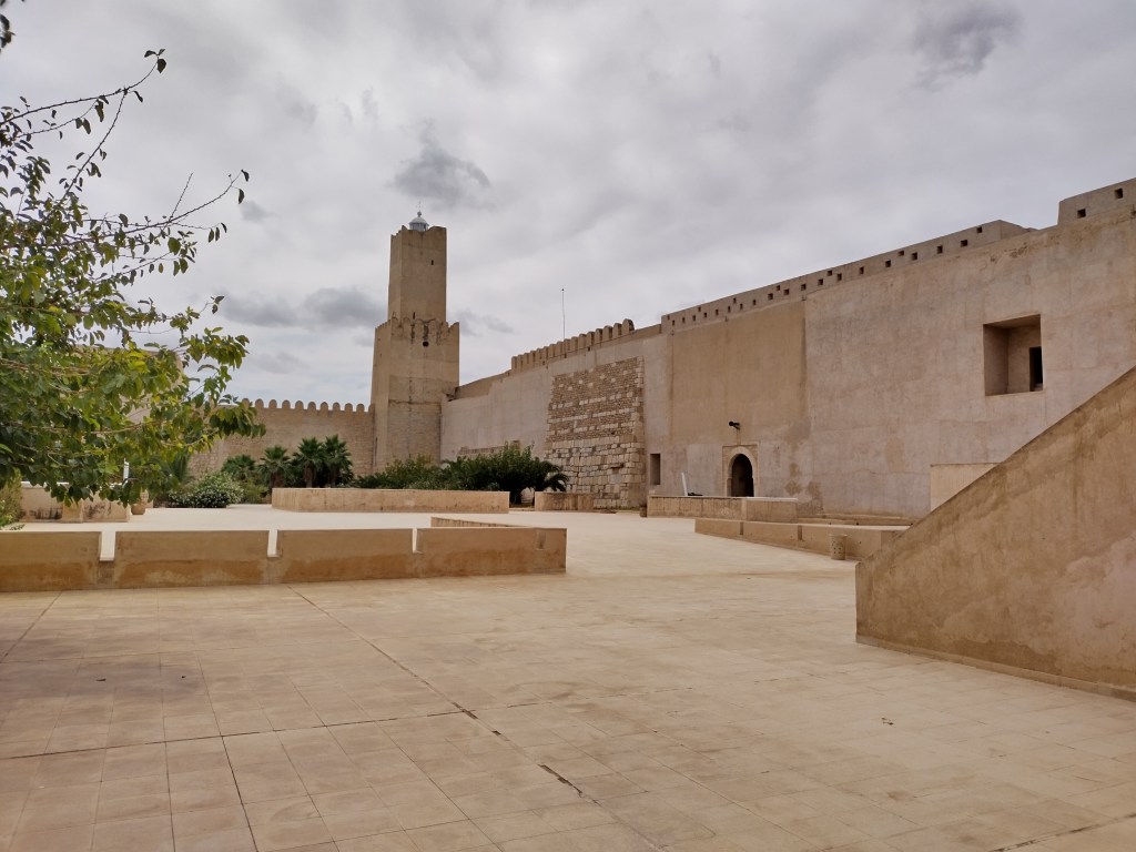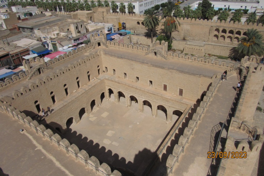 Frente a la mezquita vemos El Ribat, de la misma época. A su llegada, los musulmanes iniciaron a la largo de la costa, la construcción de pequeñas fortalezas con su torre de vigilancia, para protegerse de las invasiones, de hecho ante cualquier indicio se comunicaban con los ribats de las ciudades cercanas. El de Susa se conserva totalmente original y su torre ha sido usada como minarete de la mezquita, ya que ésta nunca lo tuvo. Posteriormente, esta edificación fue convertida en madrasa (escuela coránica). El billete de entrada vale 8 dinares, aproximadamente 2,50 euros.
