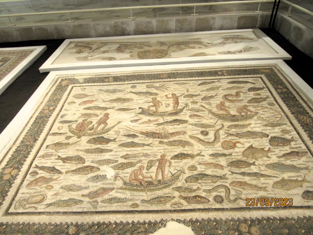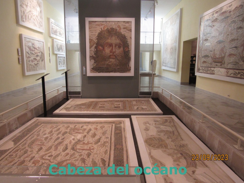 Al ingreso se presentan los monumentos del Sahel antiguo, (Susa está a la entrada del desierto), una narración y fotos de las catacumbas cristianas del siglo XII y de la historia antigua de la ciudad, llamada Hadrumetum por los romanos. Las catacumbas se encuentran muy cerca de la ciudad, están debajo de una residencia familiar 😮 , alcanzan una longitud de 5 kilómetros y alojan más de 15.000 tumbas datadas entre los siglos II y el V d.C., no han sido saqueadas y dicen que se puede apreciar muy bien los sarcófagos a través de un vidrio. Por supuesto no las visité, sufro de claustrofobia 😦 .